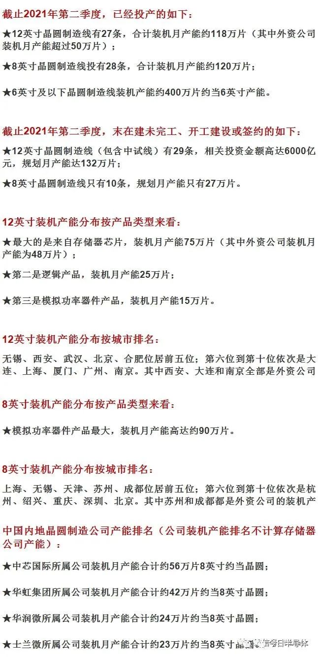 截止2021年第二季度,中国内地12英寸、8英寸和6英寸及以下的晶圆制造线共有200条(不含纯MEMS生产线、化合物半导体生产线和光电子生产线)。 ...