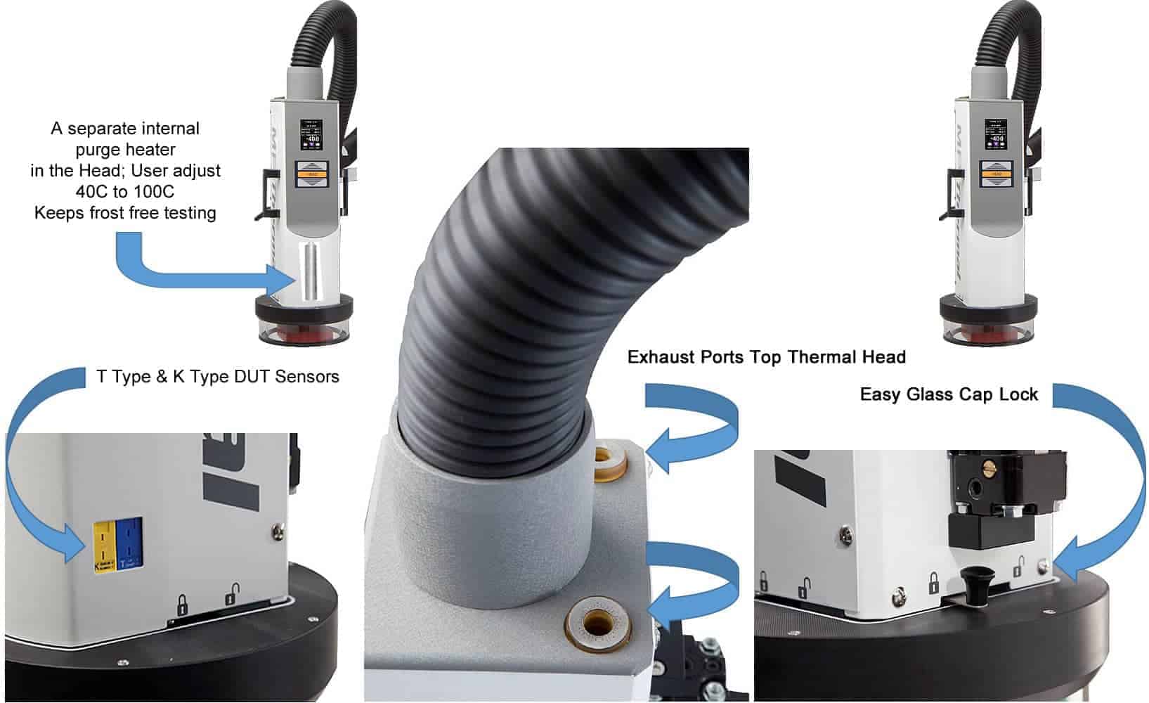 ThermalAir TA-5000A头,带玻璃腔,可直接在您的测试零件上输出受控的清洁干燥热气流,进行输出温度控制。