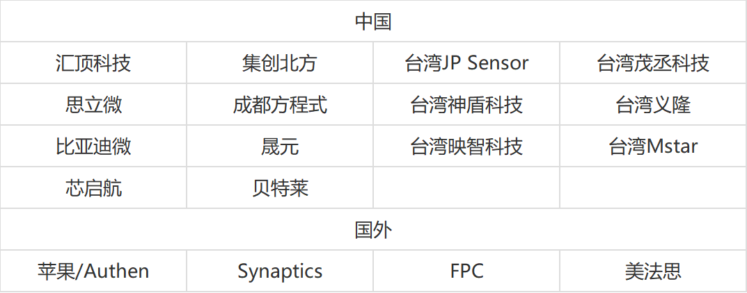 接上文:2021最新半导体企业汇总(一)6、IGBT片7、MOSFET8、CMOS9、液晶芯片10、触控芯片11、指纹识别芯片12、人脸识别 虹膜13、射频芯片1